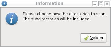 - Dernière étape, le choix du/des répertoires à scanner, précédé encore une fois par une fenêtre d'information.