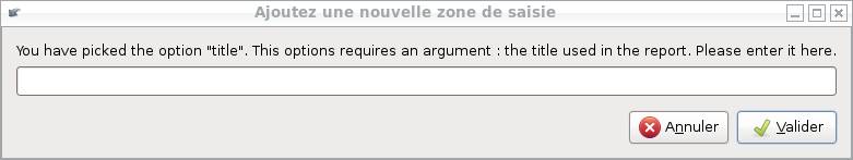 - Si l'on a choisi l'option "title", qui nécessite l'entrée du titre, une boîte de dialogue s'affiche nous invitant à le rentrer.