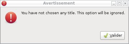 - Dans ce cas, si l'on rentre un titre vide, on est averti que cette option ne sera finalement pas prise en compte.
